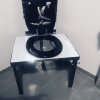Du sitzt auf diesem Stuhl und fühlst Dich schon mal alleine durch die Sitzhöhe präsentiert.Damit nicht genug. Da Du keinerlei Bodenkontakt hast, sondern Deine Füße auf den Trittblechen fixiert sind, hast Du das Gefühl zu schweben. Deine Oberarme und Handgelenke sind durch die gelenkgelagerten Stahlschellen fixiert, hinzu kommen 4 Riemen auf der Sitzfläche und 2 Riemen an der Lehne, die Dir unmissverständlich zu spüren geben, daß Du vollkommen ausgeliefert bist. Den Versuch, Deine Beine zusammenzudrücken, unterbinden wirkungsvoll 2 an der Sitzfläche angebrachte Polster. Der Kopf wird durch ein Halseisen fixiert und zusätzlich durch eine Gummikopfstütze in Position gehalten. Eine Knebeleinheit mit NS-Tropftrichter nimmt Dir nun auch die letzte Möglichkeit der Widerrede und Du kannst nichts mehr tun, als Dich damit abzufinden. Spätestens wenn der Dosierhahn des Glastrichters geöffnet wird, solltest Du sowieso lieber schlucken. Die unten am Stuhl optional angebrachte Fickmaschine zerstreut dann auch das letzte Bisschen der Eigenkontrolle.